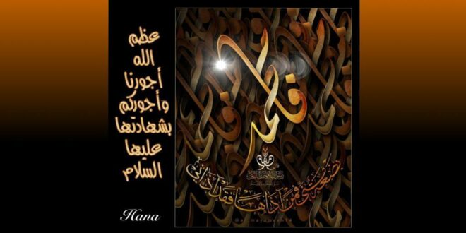 نتقدم إلى الموالين والمحبين لأهل بيت النبوة عليهم السلام في كل مكان بالعزاء في بضعة المصطفى صلوات الله وسلامه عليه وعليها، والمعزى في هذا اليوم هو حفيدها المبارك المنتظر المهدي عجل الله تعالى فرجه الشريف ، راجيا من المولى عز وجل أن يعجل بظهوره المبارك حتى نشهد في هذا العصرطلعته البهية ، وليقيم دولة العدل الإلهي على الأرض فيفرح به سكان السموات وسكان الأرض .
