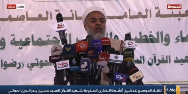 جاء ذلك خلال اللقاء الموسع الذي أُقيم، اليوم، في جامع الشعب بالعاصمة صنعاء، تدشينًا لأنشطة الذكرى السنوية لشهيد القرآن، وبحضور رسمي وشعبي واسع.